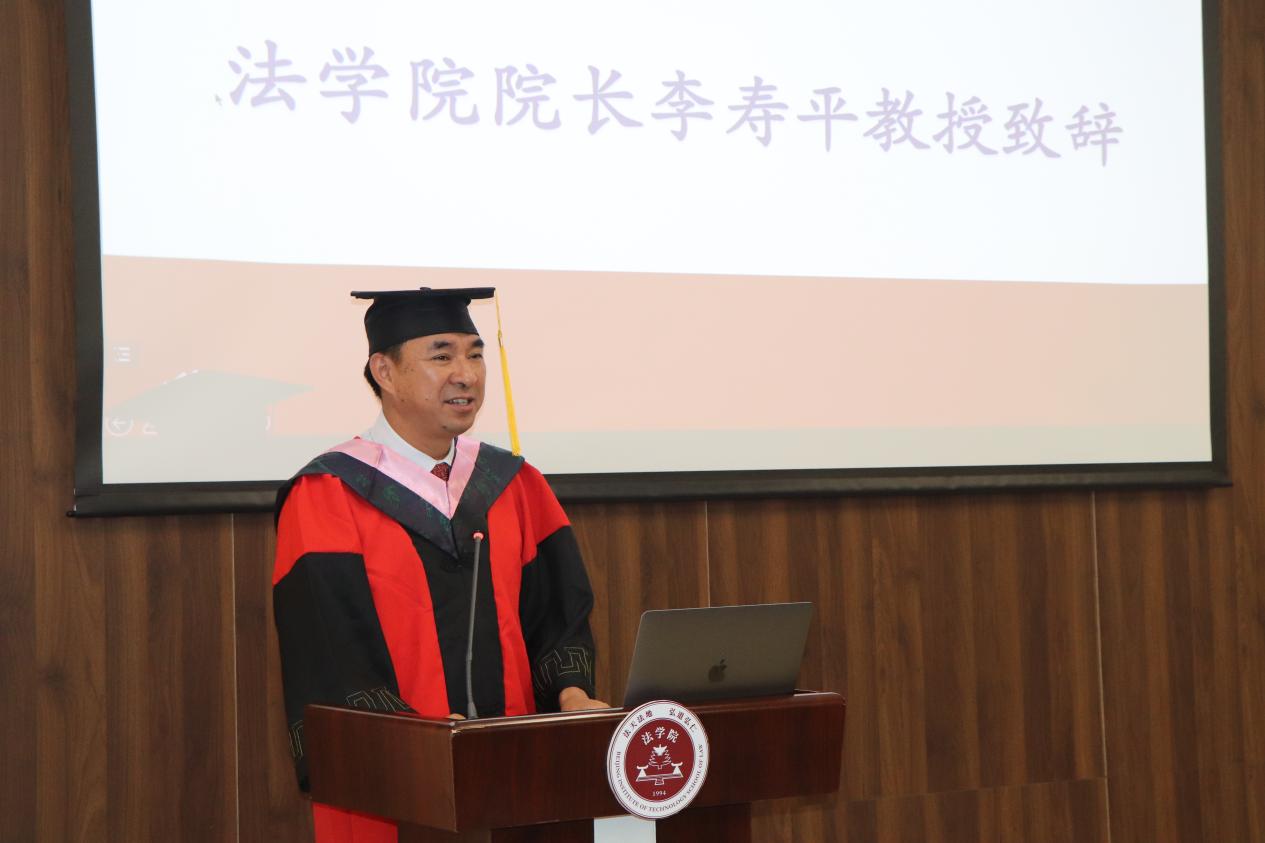 李寿平发表了致辞,代表beat365中国官方网站向圆满完成学业的毕业生致以最热烈的祝贺。李寿平希望毕业生能牢记“坚定、坚守、坚持”三个关键词,以实际行动践行新时代青年的责任和担当,书写无悔于青春、无愧于时代的华彩篇章。坚定信心,勇敢面对前进征程上的一切困难挑战;坚守底线,在充满不确定的时代仍要以信念为基石,坚守法律人的职业底线;坚持科学方法论,终身学习,以创新的思维弘扬公平正义。