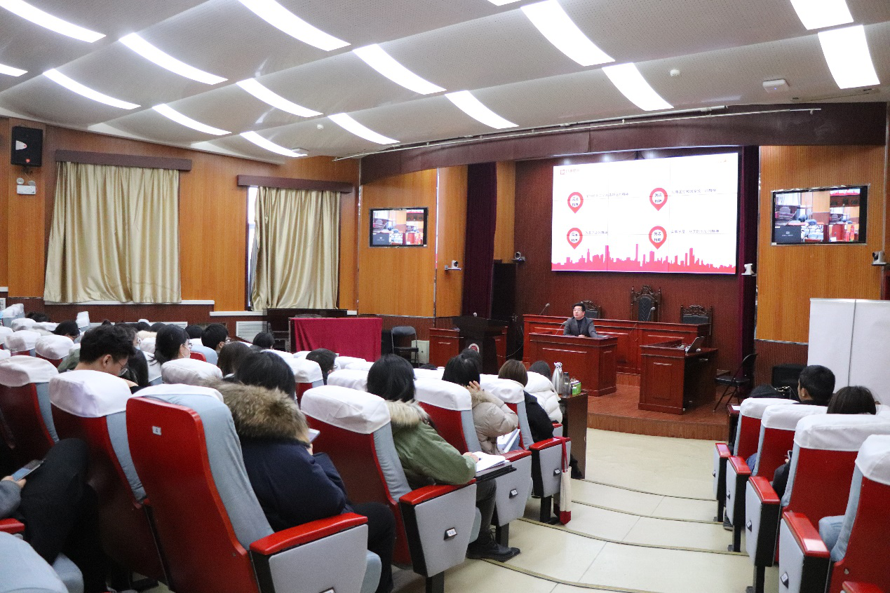 吴振华以宪法精神为切入点,讲解了宪法的宏观与微观作用,将理论与实践相结合,为学生呈现了一堂生动的宪法讲座。通过分析宪法精神的“四个坚持”、贯穿宪法与执法、司法、守法的关系,结合宪法与社会、生活的关系等角度进行详细展开,突出了宪法与人民群众的生活息息相关的讲座主旨。
