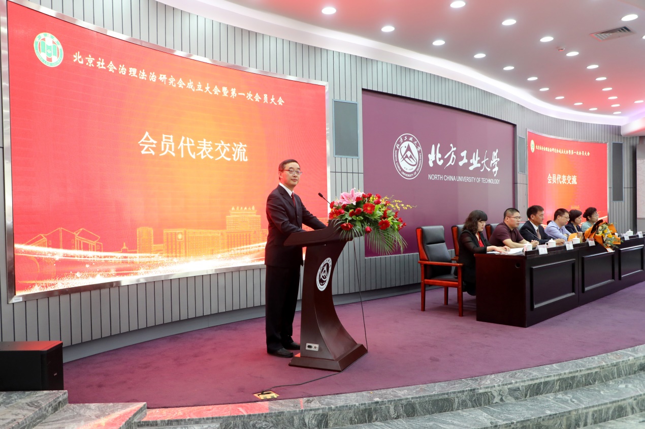 (北方工业大学法律系主任王海桥主持会员大会)