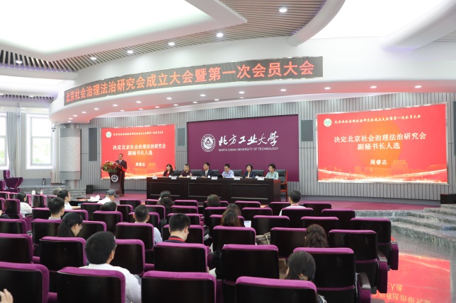 会员大会由北方工业大学法律系主任王海桥主持,王海桥教授宣读了筹备工作报告。大会审议通过了《北京社会治理法治研究会章程(草案)》和《北京社会治理法治研究会第一次会员大会选举办法(草案)》,表决通过了《北京社会治理法治研究会会费收取管理办法》,并选举了北京社会治理法治研究会第一届理事会和监事会。来自各会员单位和法治领域著名专家学者67人当选为理事,3人当选为监事。