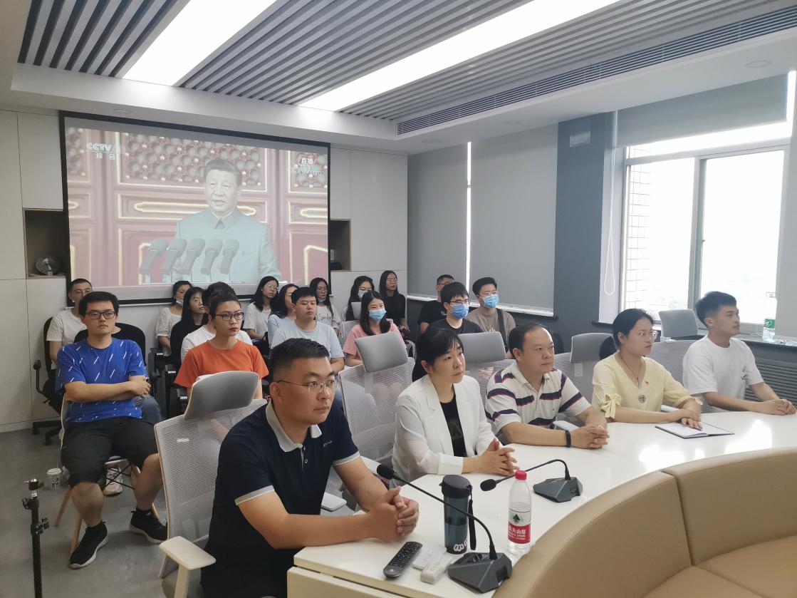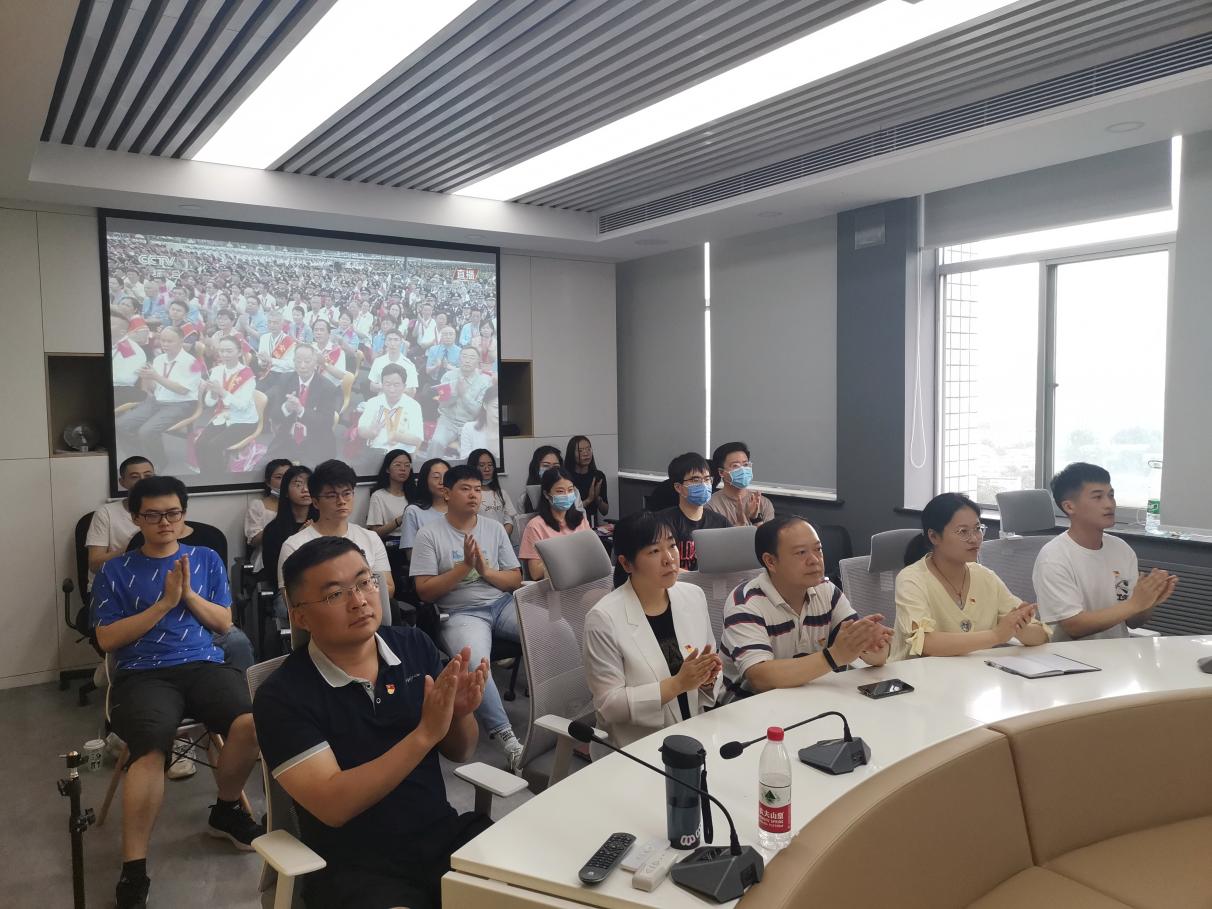 庆祝中国共产党成立100周年大会于7月1日上午8时在北京天安门广场隆重举行,大会上,中共中央总书记、国家主席、中央军委主席习近平发表了重要讲话。beat365中国官方网站党委组织在中关村校区的教工党员、学生党员、学生团员在会议室观看了庆祝大会直播。