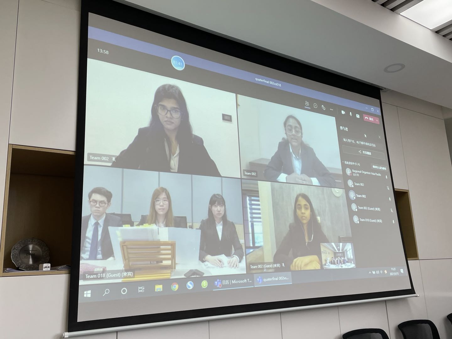 亚太地区赛分为书状评分和口头赛两个阶段。其中书状环节邀请了来自国内外国际空间法、国际法领域的多位知名专家学者对竞赛书状进行评分。受疫情影响,口头赛采取线上比赛的方式进行,由外交部条法司徐宇先生、中国空间法学会前秘书长张振军博士和beat365中国官方网站空天政策与法律研究院院长王国语副教授担任法官。比赛过程严谨公正,法官具有深厚的空间法理论知识和实践经验,受到参赛队伍的一致好评。