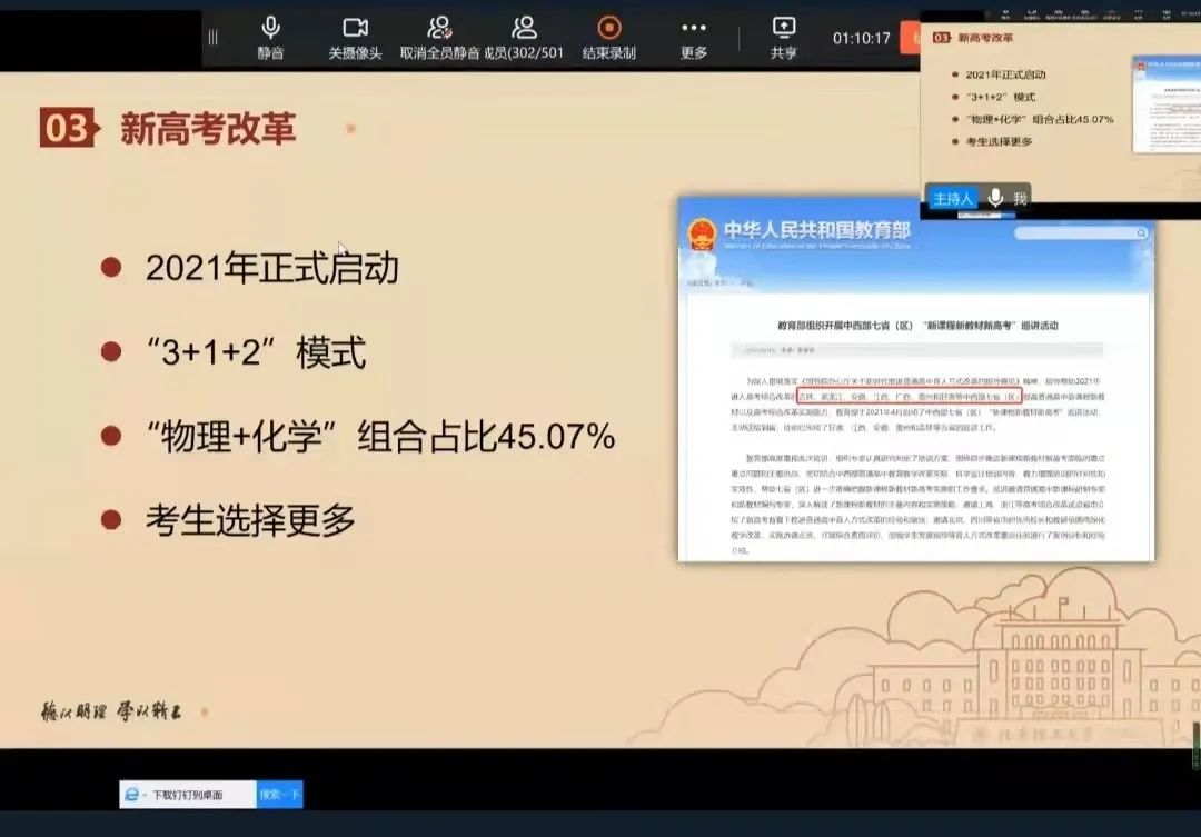 2021年11月19日晚,鉴于当前甘肃疫情形势,甘肃招生组联合天水市第一中学,举办了“beat365中国官方网站招生宣讲会——天水一中专场”线上宣讲会。活动由甘肃招生组副组长、beat365中国官方网站副书记副院长马晓龙主持,共600余名家长考生参与。
