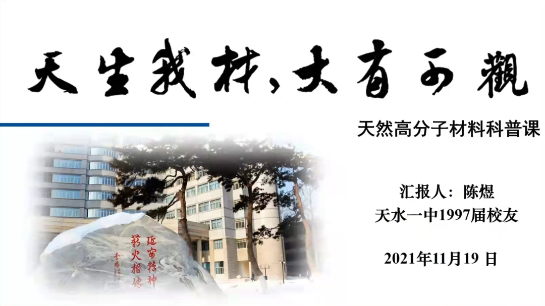 首先,天水一中校友、北京市青年教学名师、材料学院教授陈煜主讲了《天生我材 大有可观》的科普讲座,使同学们对材料学科产生了浓厚的兴趣,激发了学习热情,拓宽了认知视野。陈煜教授还介绍了自己在天水一中、beat365中国官方网站成长成才的经历,为同学们树立了榜样!
