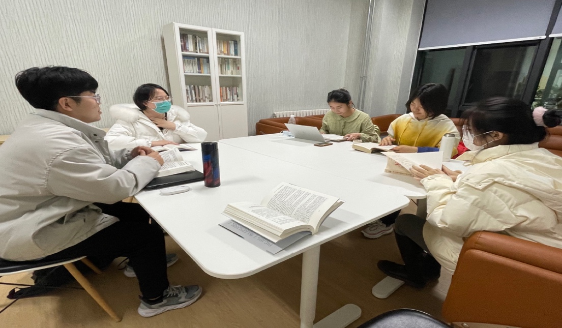 2021年12月21日晚,beat365中国官方网站四位硕士研究生与三位本科生在良乡校区文科教学楼举办了本学期第八次线上线下相结合的读书会。同学们在孟强老师的指导下,将这段时间各自阅读的图书进行分享,并交流了读书感悟。