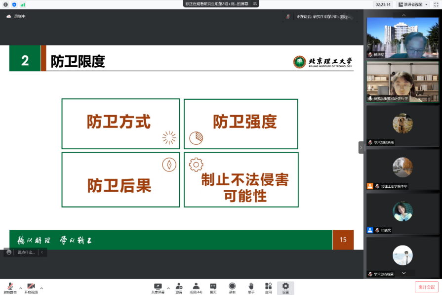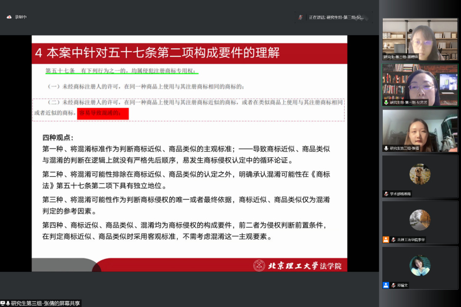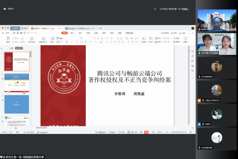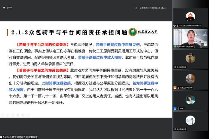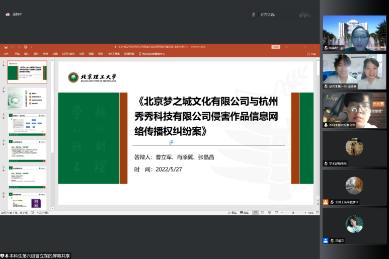 所有参赛选手展示结束后,几位评委老师分别对此次比赛进行了点评和总结。彭海青老师对于参赛选手们的表现予以嘉许。郭德忠老师提到,虽然受到疫情的影响,比赛通过线上形式,法学学子们十分珍惜宝贵的交流机会。王磊老师对于参赛选手们的理论功底进行了肯定,表示参赛选手们的表现让人眼前一亮。针对同学们需要进一步改进的地方,李华老师提醒参赛选手们要注重进一步完善法理基础知识,杨华权老师则强调要运用请求权基础理论搭建案例分析的基本框架。最终,本科生组与研究生组各决出一等奖1组,二等奖2组,三等奖2组,优秀奖2组,优秀文书奖1组,最佳风采奖1组。