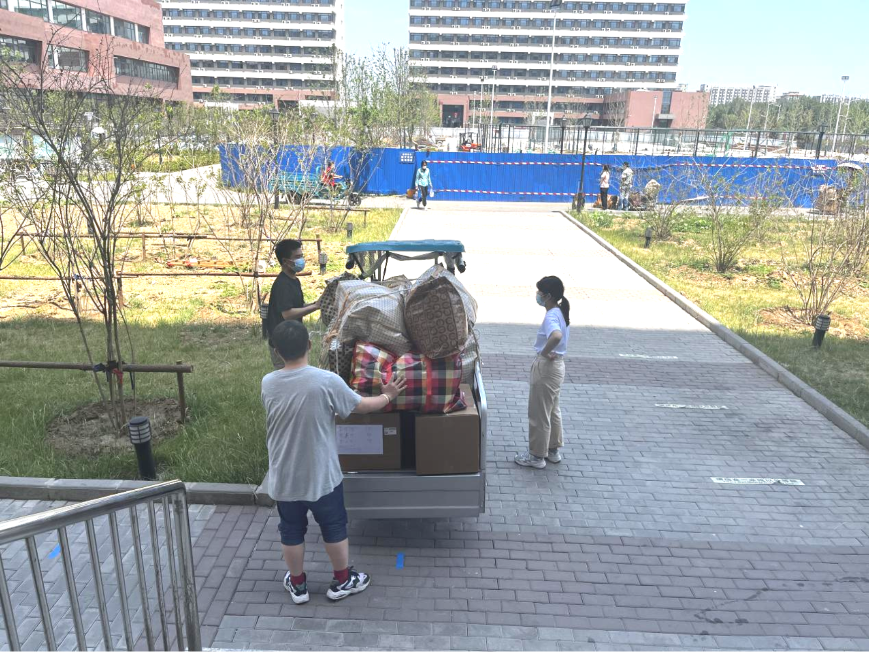 2021级研究生李馨瑶同学表示:“因为突如其来的疫情,这个毕业季匆匆忙忙,拍毕业照、运送行李和返乡都仿佛被打上了发条。一桩桩事情不仅考验着每一位毕业生,也考验着学校和学院。作为搬运行李的志愿者,为每一位毕业生的行李做好后勤保障工作是我们的职责,将一件件贴有姓名标签的行李送上返乡之途,我们的内心也充斥着送别毕业生的不舍与感慨。祝福各位毕业生们:顺利、安全返乡,毕业快乐,前程似锦!”