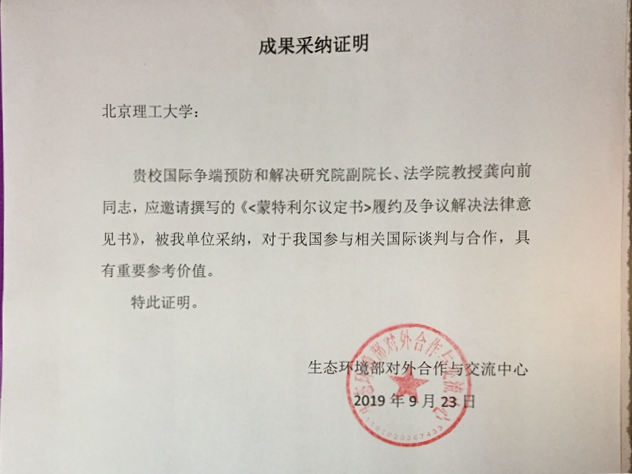 今年5月22日发表在《自然》期刊的论文认为,中国东部9省市2014年至2017年的CFC-11平均排放量比2008年至2012年的平均值高0.7万吨,占全球不明来源的CFC-11排放量至少40%-60%。受当前单边主义对外政策影响,少数国家政府极力推动多边基金延迟或中止对中国的资助,并要求中国承担所谓违反《蒙特利尔议定书》的国际责任。受国家生态环境部对外合作中心委托,我校国际争端预防和解决研究院副院长、beat365中国官方网站龚向前教授承担了应急研究任务,通过昼夜奋战,查阅大量国际法律文件,分析了其中的疑难法律问题,及时提供了“《蒙特利尔议定书》履约及争议解决法律意见书”,对我国参与国际环境谈判与合作具有重要的参考价值,维护了国家声誉和利益。