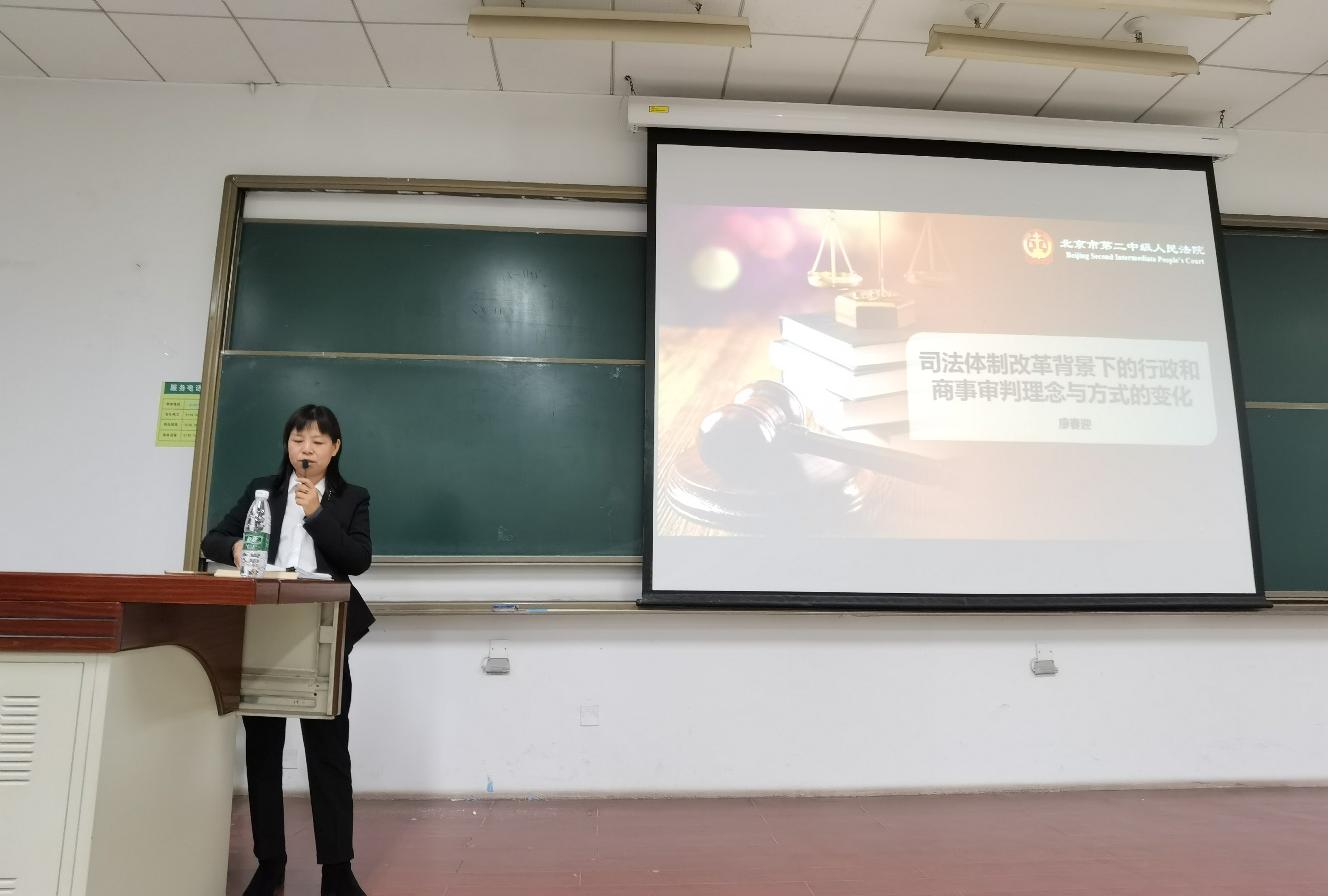 2020年12月3日晚,应我校国际争端预防和解决研究院付俊伟副院长的邀请,北京市第二中级人民法院副院长、二级高级法官、致公党中央法制建设委员会副主任、北京市政协常委、致公党北京市委委员廖春迎博士做客北理beat365中国官方网站大讲堂,主讲北理民法典公开课第6讲,向良乡校区研究生同学讲解司法体制改革背景下的行政和商事审判理念与方式的变化。本次讲座也是beat365举办的理公明法论坛第115讲,在良乡南校区理教楼101教室举行,本次讲座特邀嘉宾为李寿平院长,由beat365付俊伟副教授主持,李华老师、党莹老师等一百四十余名师生参加了讲座。