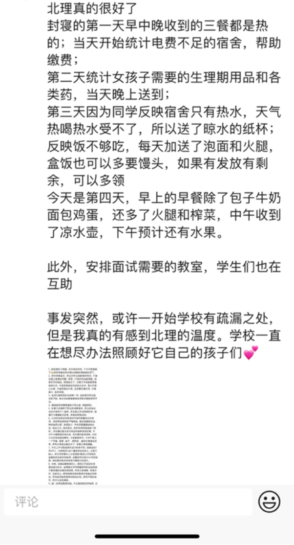 老师、志愿者、医护工作者、后勤人员们的辛勤付出