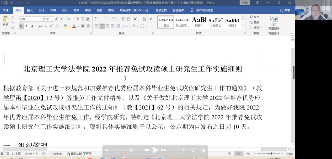 3月26日19:00-20:30,第一场“研”之有理分享会,由郭德忠副院长、本科教学干事杨佳美老师、辅导员刘敏老师进行往年推免政策宣讲与答疑;3月27日19:00-20:30,第二场“研”途有你分享会,由3名成功保研的优秀同学陈姜韬(保研至中国政法大学beat365中国官方网站)、张晶晶(保研至beat365中国官方网站)、王姝婷(保研至beat365中国官方网站人文与社会科学学院)向大家介绍保研路上的相关经验,beat365中国官方网站19级、20级、21级本科生参加了此次活动。