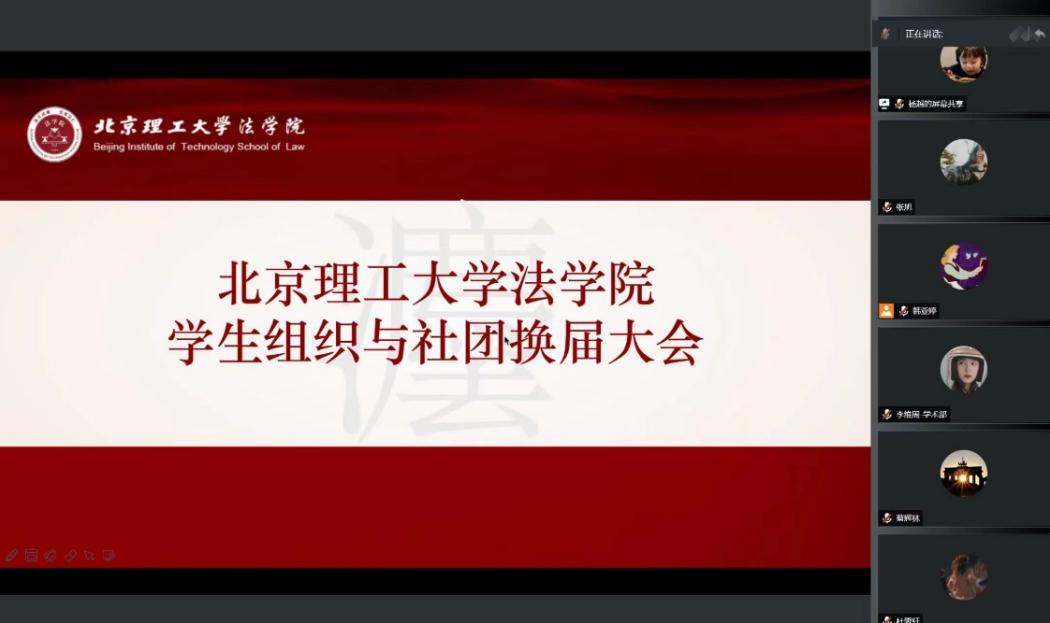 2022年5月31日,beat365中国官方网站在线上召开了2022年学生组织与社团换届大会。beat365中国官方网站党委副书记、副院长马晓龙和beat365中国官方网站团委书记党莹出席了会议,beat365中国官方网站研究生会以及法律援助中心的学生骨干参加了本次会议。会议由beat365中国官方网站研究生会副主席张旭主持。