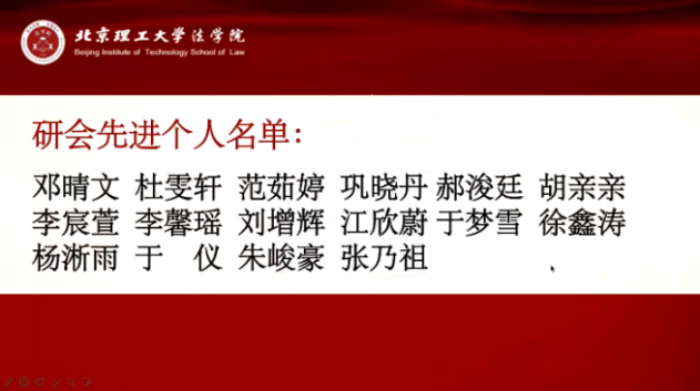 竞选环节结束后,由辅导员党莹宣布本学期研究生会“先进个人”和法律援助中心“优秀志愿者”名单。