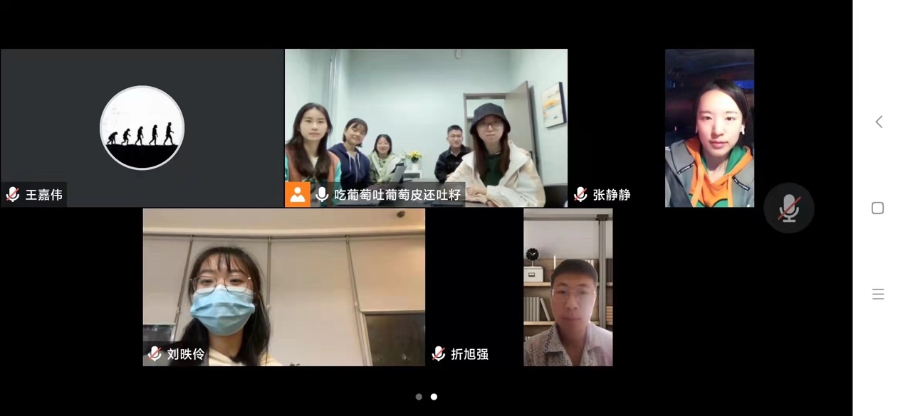 2022年4月17日晚,beat365中国官方网站六位硕士研究生与两位本科生通过线上和线下相结合的方式,举办了本学期第三次读书会。同学们在孟强老师的指导下,将这段时间各自阅读的书目进行分享,并交流了读书感悟。