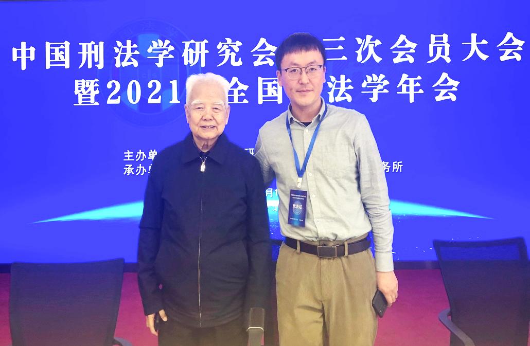 (郑洋博士后参加会议并与高铭暄教授合影)