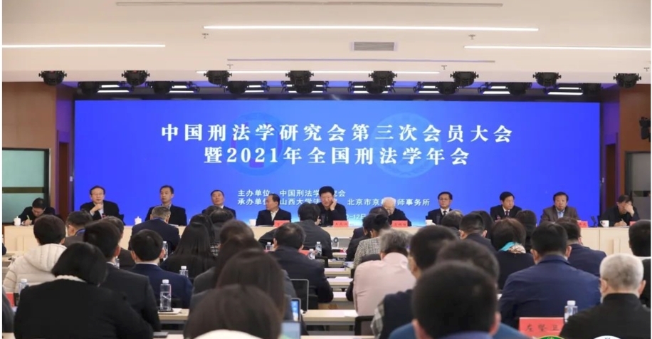 2021年12月11日-12日,中国刑法学研究会第三次会员大会暨2021年年会在国家检察官学院香山校区以线上和线下相结合的方式举行。会议分为开幕式、换届选举大会、主题报告和专题研讨等环节。中国法学会党组成员、副会长王其江,中国刑法学研究会名誉会长高铭暄,全国人大常委会法工委副主任李宁,最高人民法院副院长高憬宏,最高人民检察院检察委员会专职委员张志杰,山西大学副校长孙岩,北京京都律师事务所名誉主任田文昌出席会议并致辞。