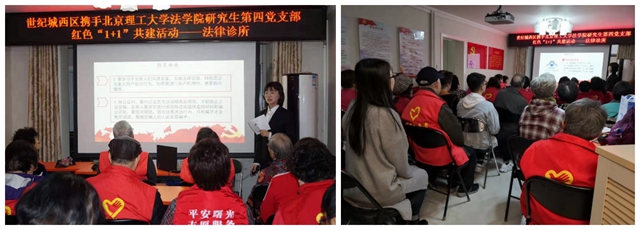 为开展“不忘初心,牢记使命”主题教育,2019年10月24上午,beat365中国官方网站研究生第四党支部前往曙光街道世纪城西区党支部开展“法律进社区”普法活动。本次活动邀请了北京也迪律师事务所高甡屾主任、万银律师出席,为社区提供法律服务。