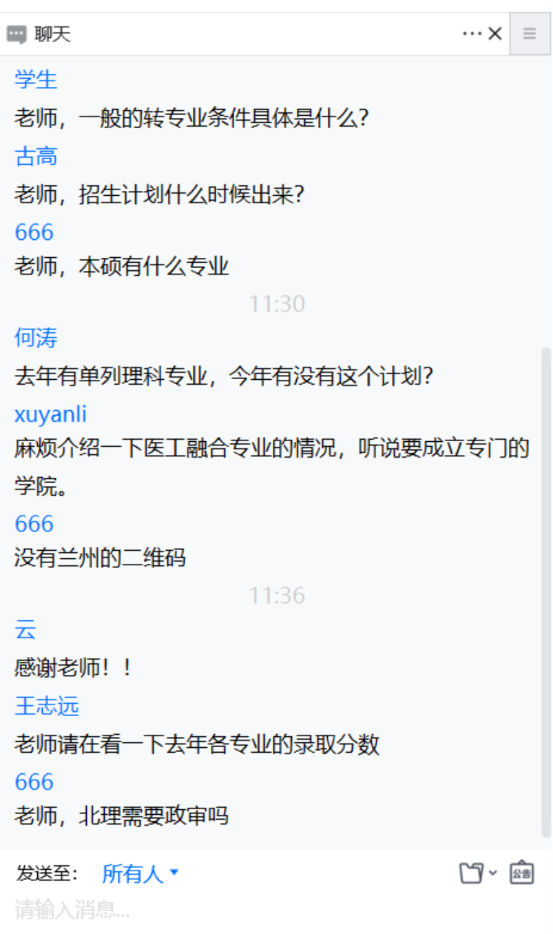 最后,张瑜介绍了北理工的招生政策和甘肃省的往年录取情况,公布了北理工甘肃招生答疑群,并对考生和家长关心的招生计划、专业选择、录取分数、奖学金设置、单列专项等方面的问题一一做了详细解答。