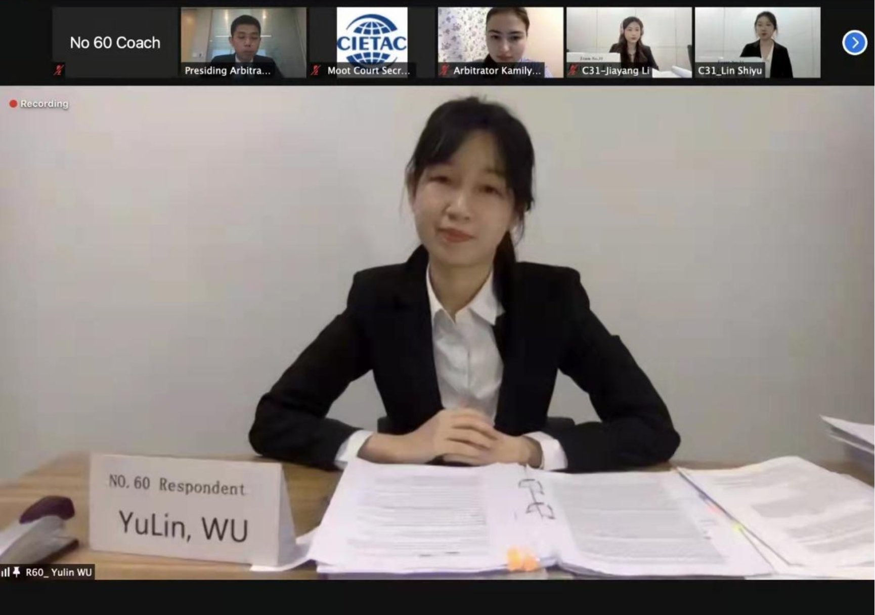 在为期四天的比赛中,比赛经历了四轮循环赛,申请人方辩手李维周、tatia,被申请人方辩手吴雨霖、tatia分别进行了两轮比赛,辩手们在场上侃侃而谈,从程序和实体两个方面进行缜密激烈的辩论,呈现出了四场精彩绝伦的比赛。