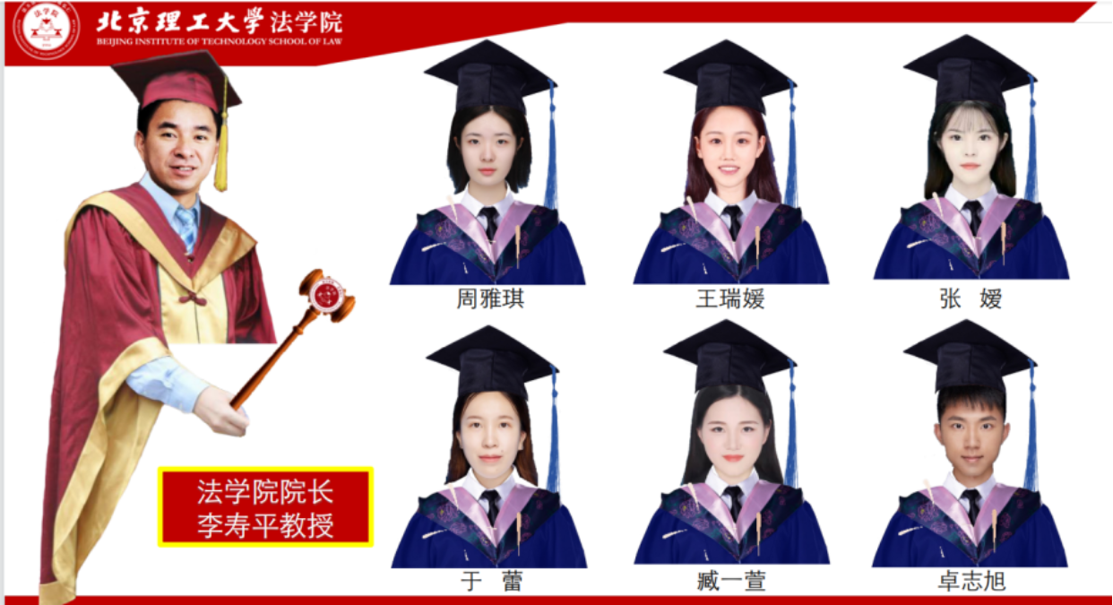 在毕业生学位授予环节,院长李寿平教授邀请教授委员会成员韩君玲、龚向前、齐延平、赵秀梅、胡晓霞共同为毕业生拨穗。拨穗仪式结束,老师与同学们,线上线下合影留念,把美好的时刻永远定格。