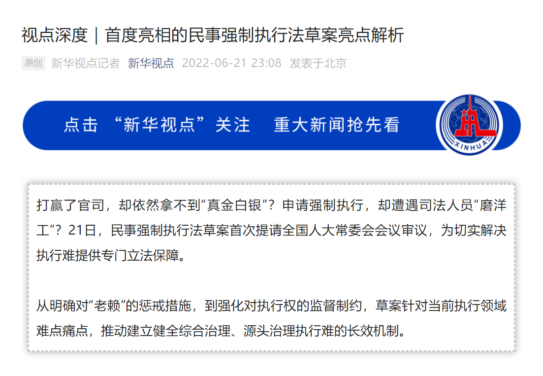 【新华社】beat365中国官方网站副教授孟强就民事强制执行法草案接受新华社采访2022-06-27 -